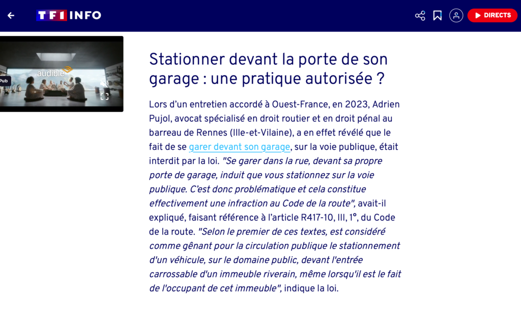 TF1 : Se garer devant son garage en ville ?